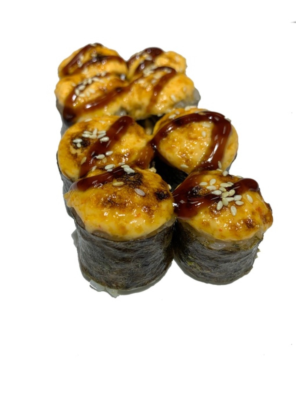 Рис, лист нори, угорь, авокадо, спайси соус, соус унаги Такемура, кунжут