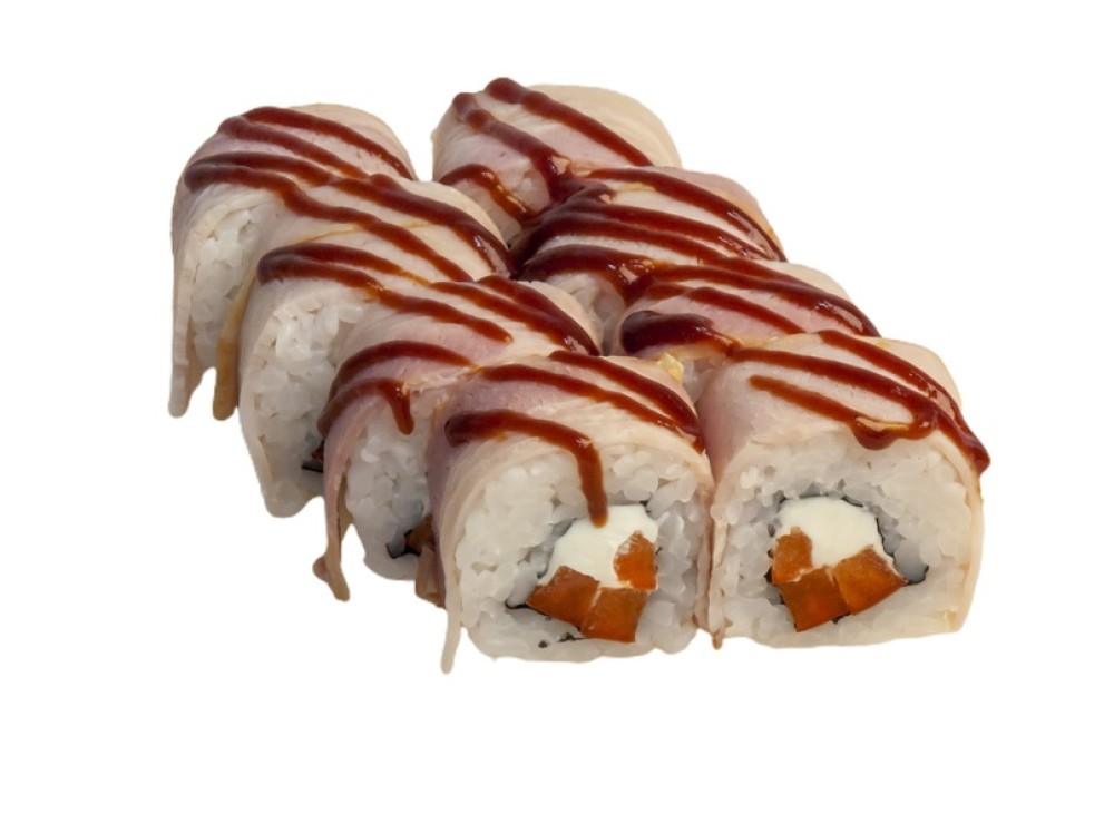 Нори, рис, сливочный сыр, болгарский перец, бекон, соус барбекю