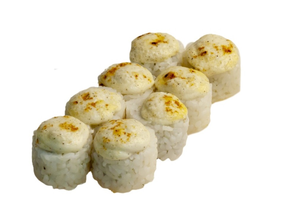 Нори, рис, сливочный сыр, курица запеченная, сырная шапочка