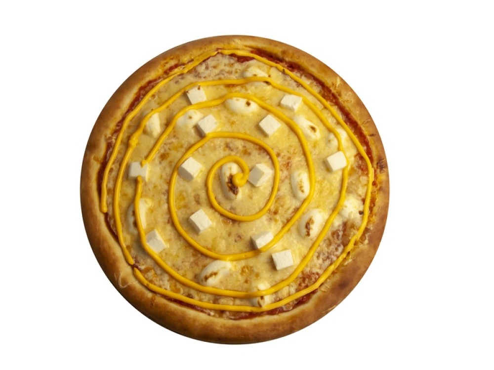 Тесто, соус томатный, моцарелла, пармезан, фета, сливочный сыр, сырный соус