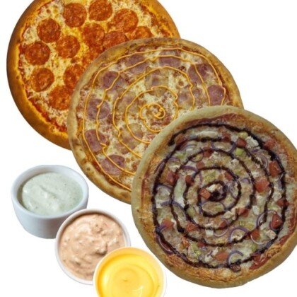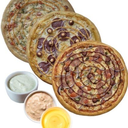 Пицца «Карбонара», пицца «Жюльен», пицца «Ливорно» соус 1000 островов 50 гр, соус чесночный 50 гр, соус сырный 50 гр
