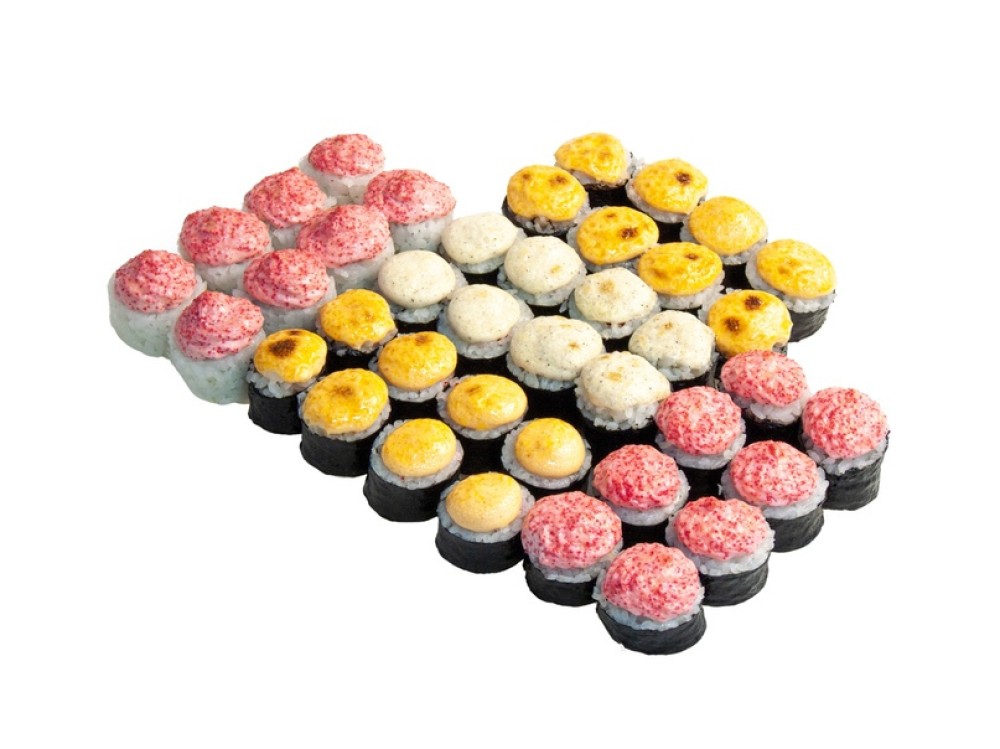Ролл «Кани хот», ролл «Сенсей хот», ролл «Лава хот», ролл «Эби хот», ролл «Чикен хот» К сету прилагается два комплекта соевого соуса, имбиря, васаби, бамбуковые палочки